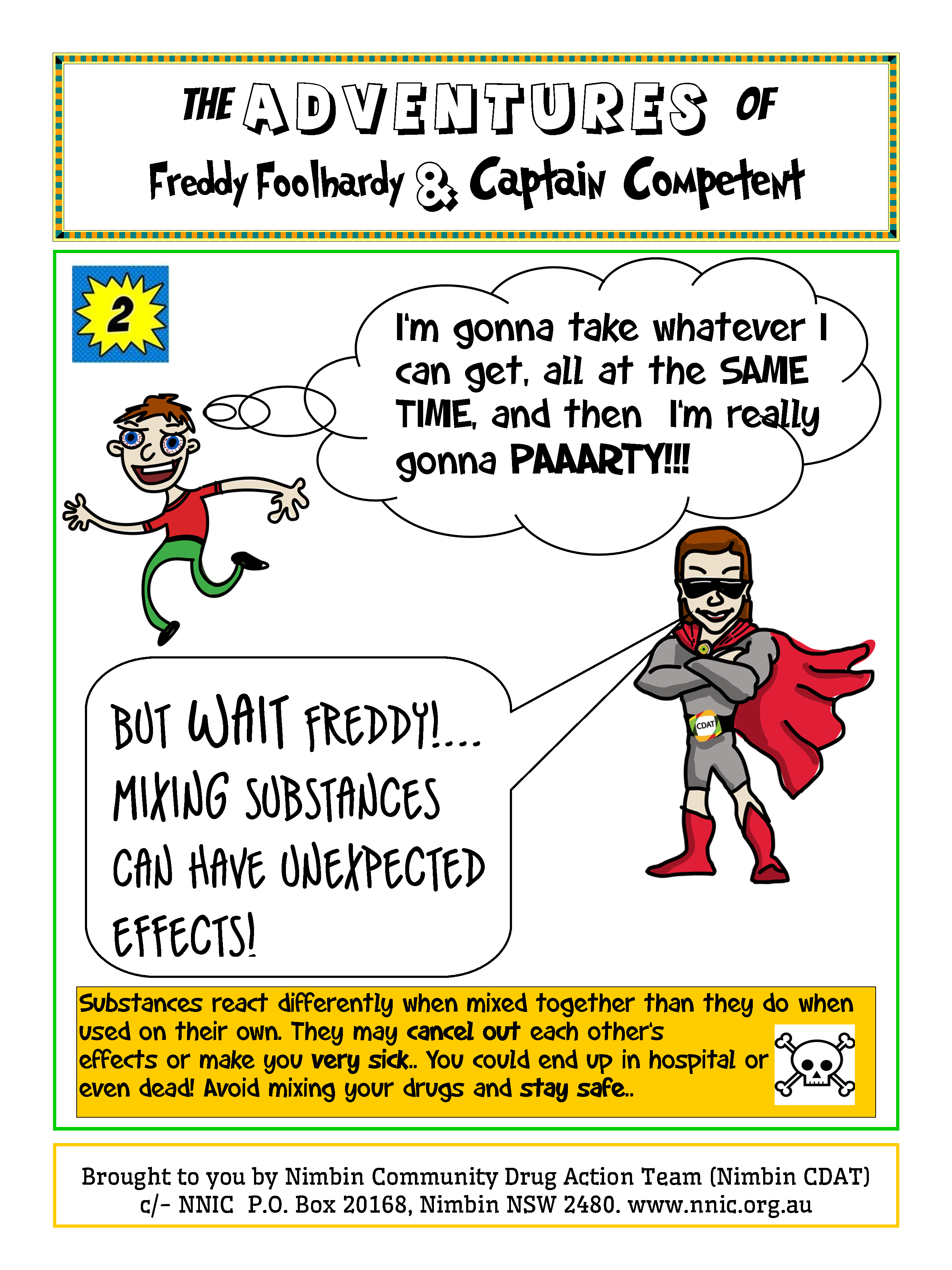 Nimbin Community Drug Action Team (CDAT) - we are looking for more members from the community. Nimbin CDAT’s purpose is to identify and respond to harm arising in our community because of drug or alcohol use, and to prevent and reduce that harm where we can. Look out for the Adventures of Freddy Foolhardy and Captain Competent with their harm minimisation messages. To join Nimbin CDAT contact This email address is being protected from spambots. You need JavaScript enabled to view it.
